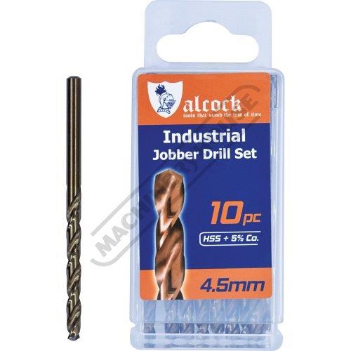 ALCOCK HSS Jobber Drill Pack - 10 Piece Ø4.5mm M35 Grade HSS with 5% Cobalt 135º Precision Ground Flute & Split Point