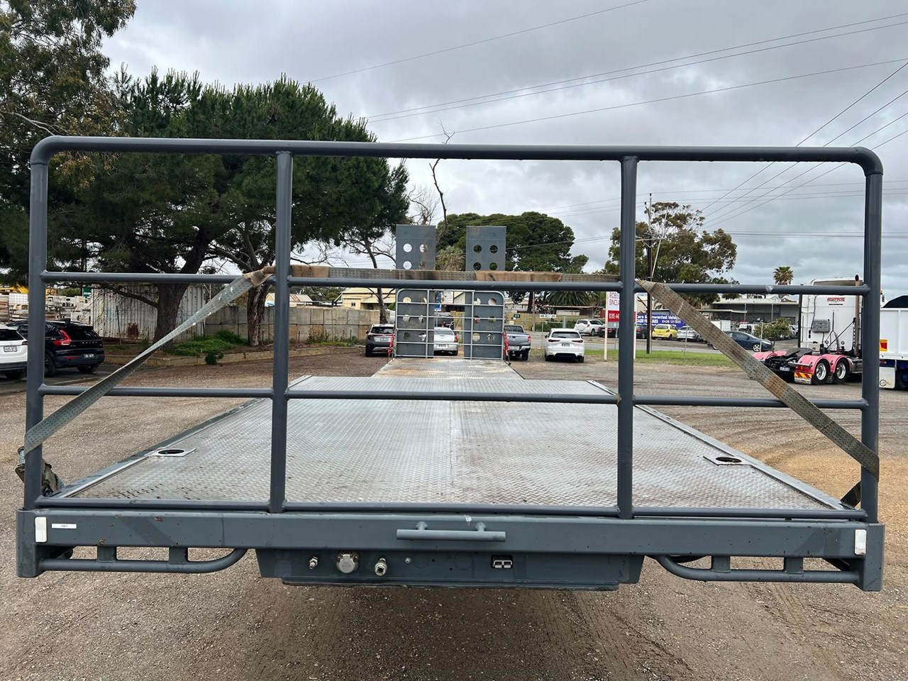 44'6" Long, Container Pins, Road Train Rated with Ringfeder & Air & Electrics to Rear, Electric/Hydraulic 3m Ramps, York Axles on Spring Suspension, Jost Landing Legs, 10 Stud Chrome Wheels, 255/70R22.5 Tyres, 1020mm Deck Height, 2 x LH Side Toolboxes, Water Tank, Front & Rear Loading Racks, Spare & 2 x Carrier, Very Tidy Trailer with Road Train Rating.