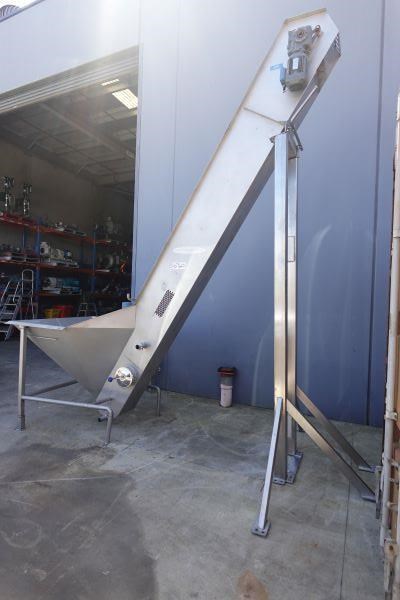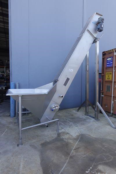 Unit is a stainless steel food grade incline mesh conveyor.