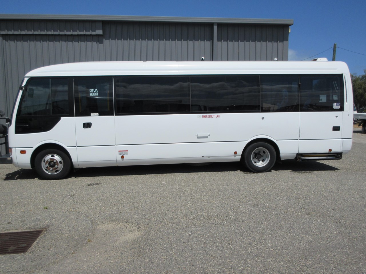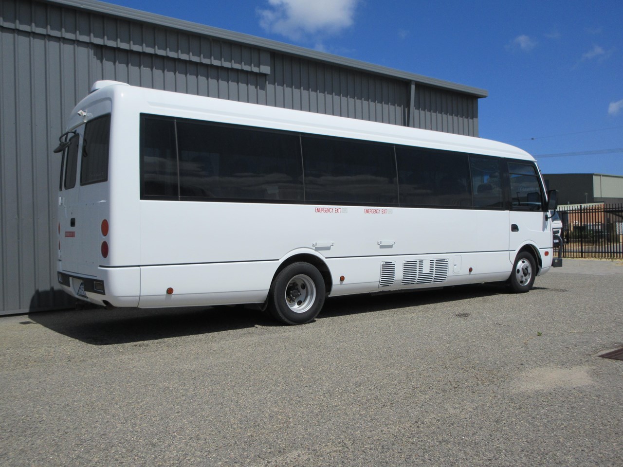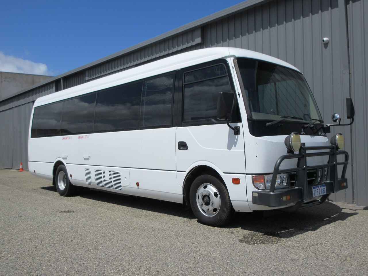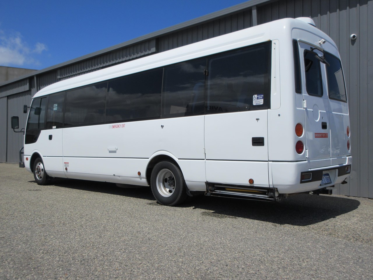 2015 - Mitsubishi Fuso Rosa Deluxe Bus, ready for its new home today, Standard with 25 seating capacity, high back coach style seats & retractable seat belts, Factory fitted air-conditioning, electric side access door with additional step & hand rails. Wheel Chair lifter & anchor harness & tracking fitted also. Full loading lights & internal lighting, Alloy Bull bar & spotlights & 50mm tow bar.