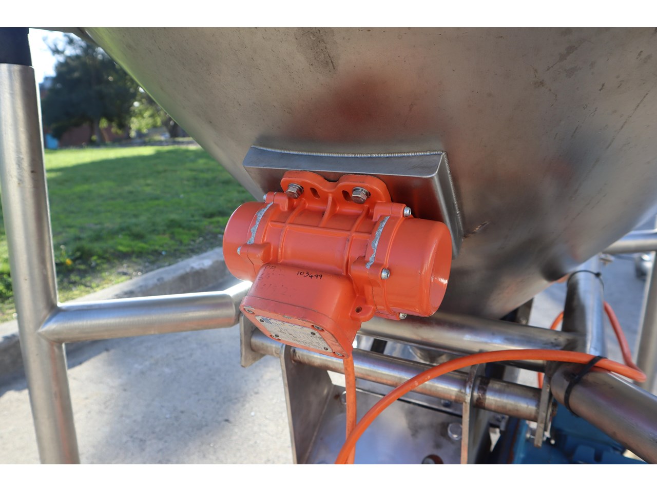 The hopper has a vibratory motor attached to it and it also has a magnet inside to catch metallic bits.